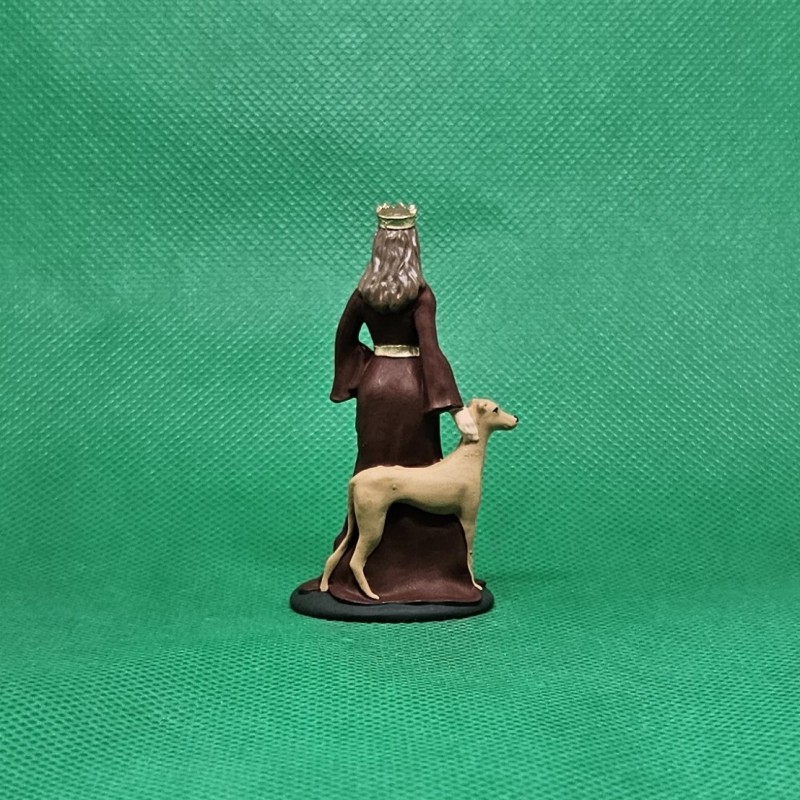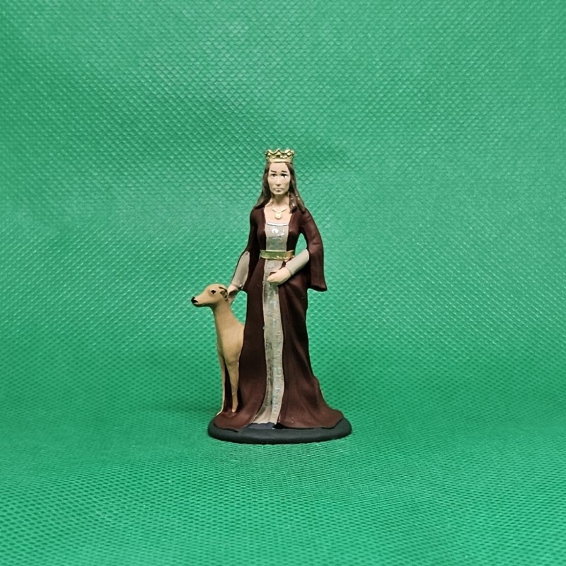 Aby naši rytíři měli koho ochraňovat a pro koho se bít: královna v krásných hnědých šatech, s věrným psím ochráncem, výška je