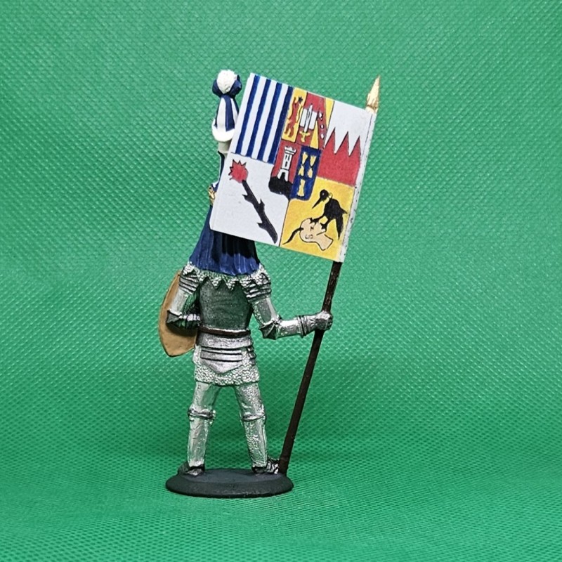 Cínová figurka rytíře s praporcem