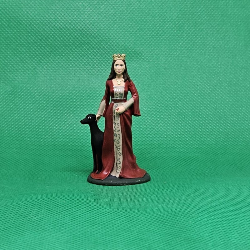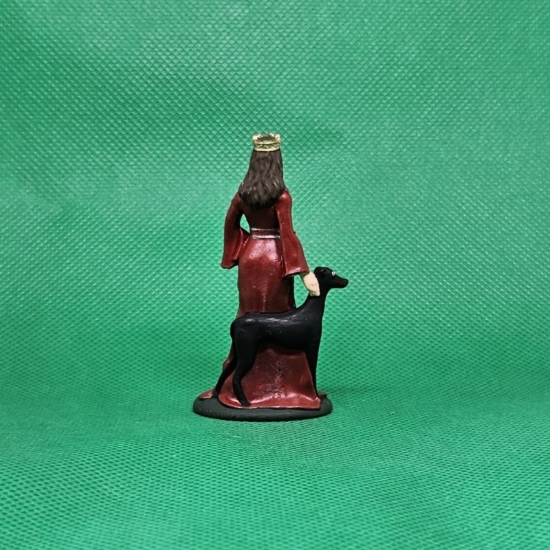 Aby naši rytíři měli koho ochraňovat a pro koho se bít: královna v krásných hnědých šatech, s věrným psím ochráncem, výška je