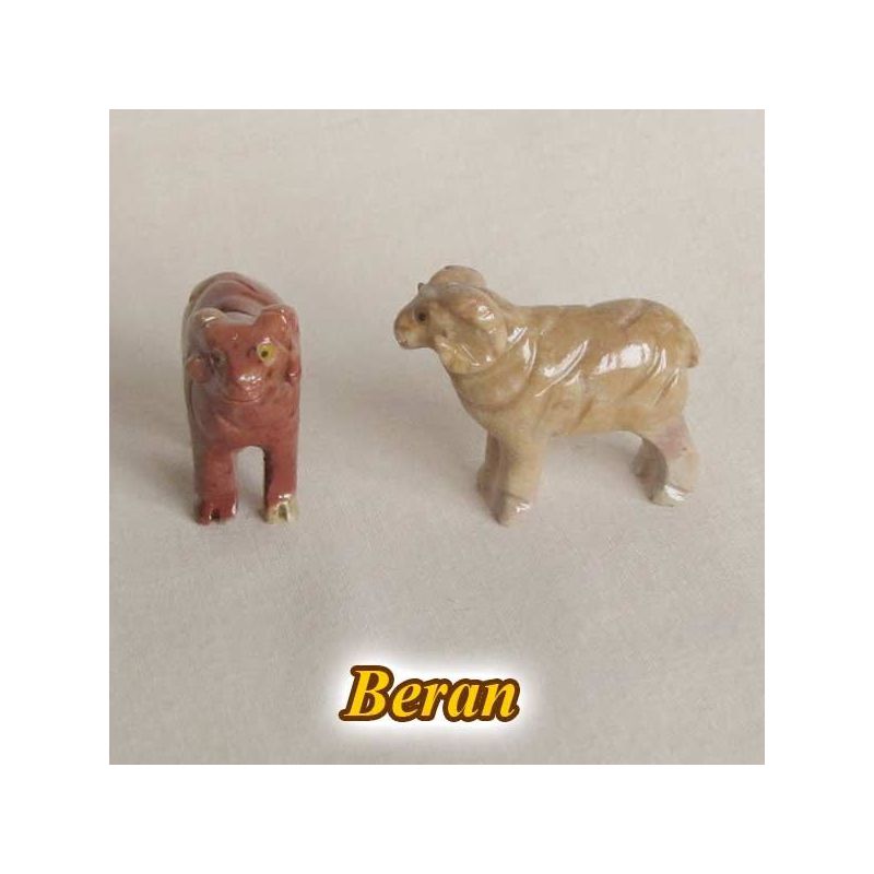 Figurka beránka (ovečky) vybroušená z peruánského kalcitu o velikosti cca 3,5 x 3 x 1,5 cm, hmotnost je cca 15 g.
