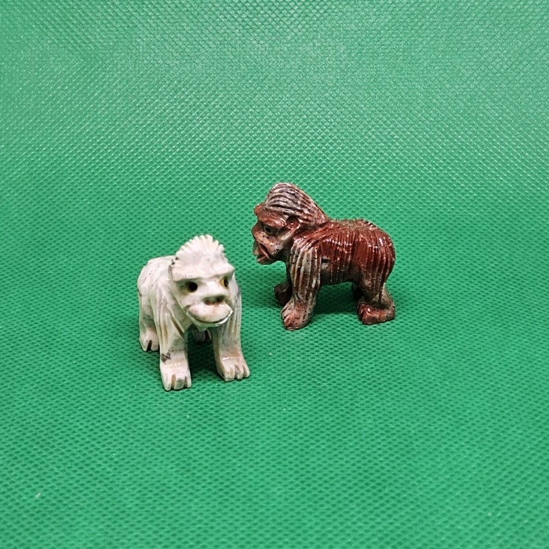 Figurka gorily horské vybroušená z peruánského kalcitu o velikosti 3,5 x 3 x 2 cm, hmotnost je cca 18 g.