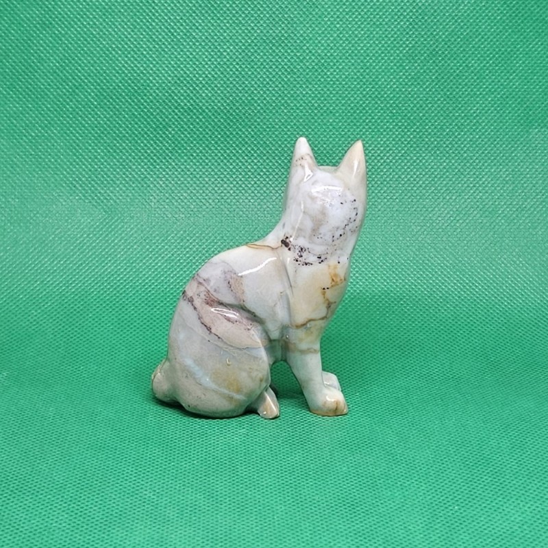 Figurka kočky vybroušená z peruánského kalcitu, hmotnost cca 140 g.