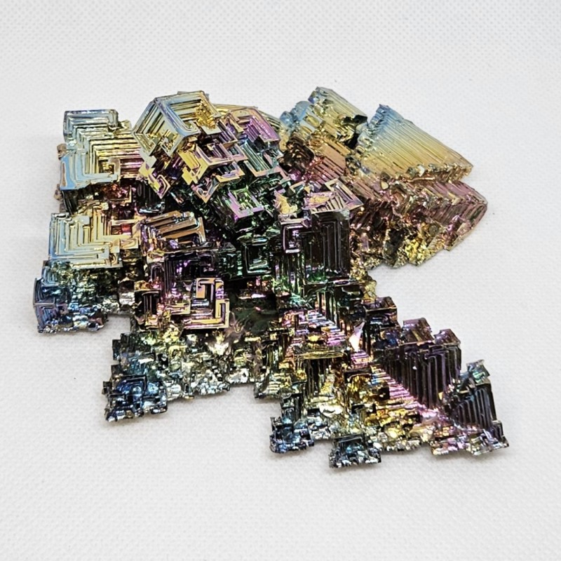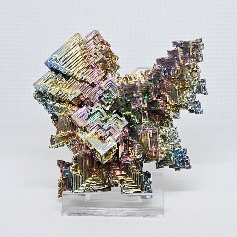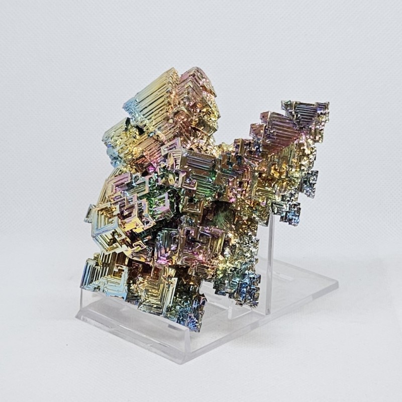 Nádherný sběratelský vzorek je uměle vykrystalizován, vyznačuje se velkou iridescencí (efektní hra duhových barev na povrchu).