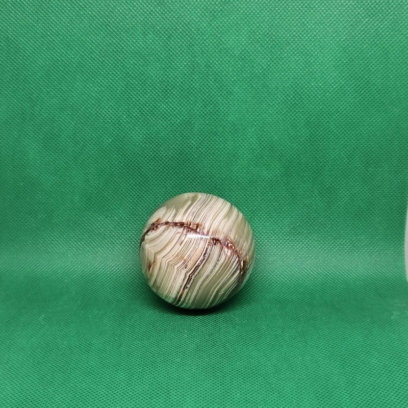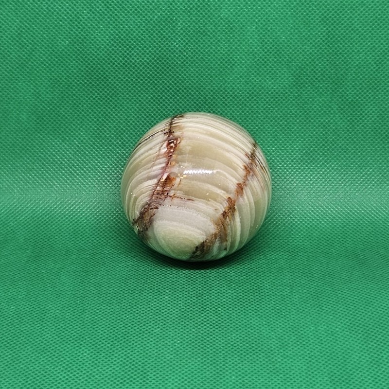 Koule z pákistánského onyxu, průměr 6 cm, hmotnost 310 g.