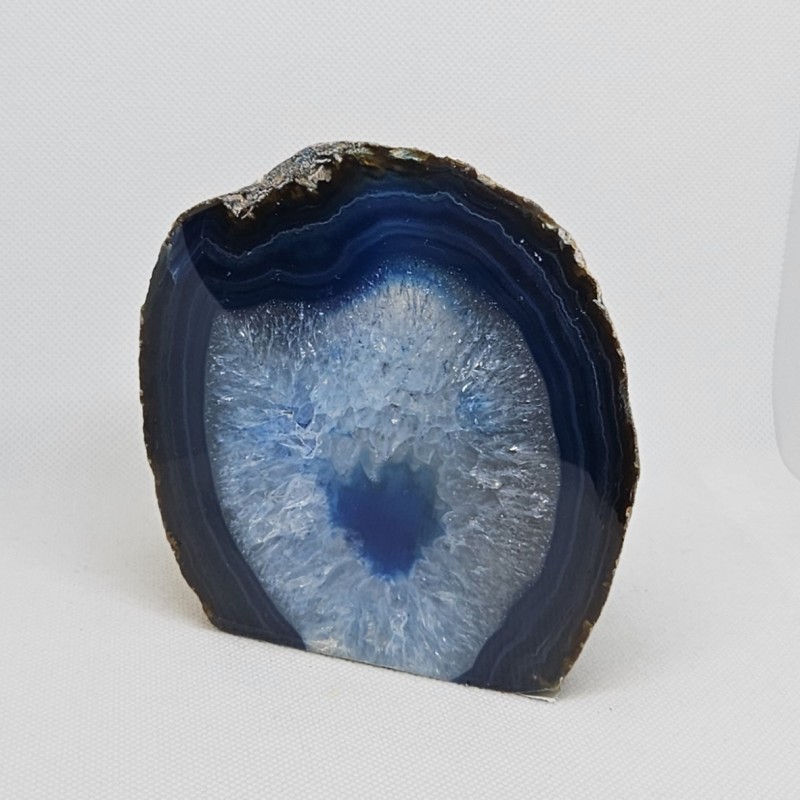 Krásný achát uměle zbarvený do odstínů modré, s navrtanou dutinou pro čajovou svíčku, spodní část je pro ochranu povrchu
