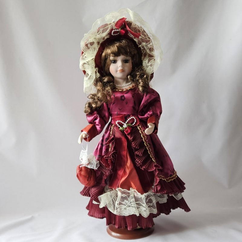 Hnědovláska ve vínových princeznovských šatech, s malou pompadurkou.