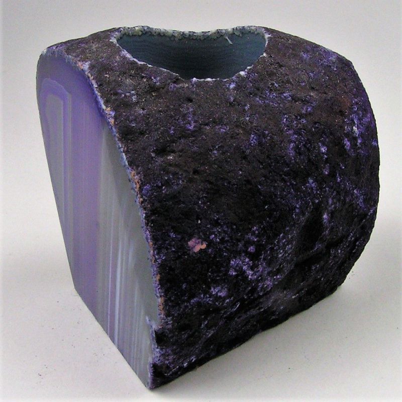Krásný achát s navrtanou dutinou pro čajovou svíčku, spodní část je pro ochranu povrchu nábytku podlepena filcem.
